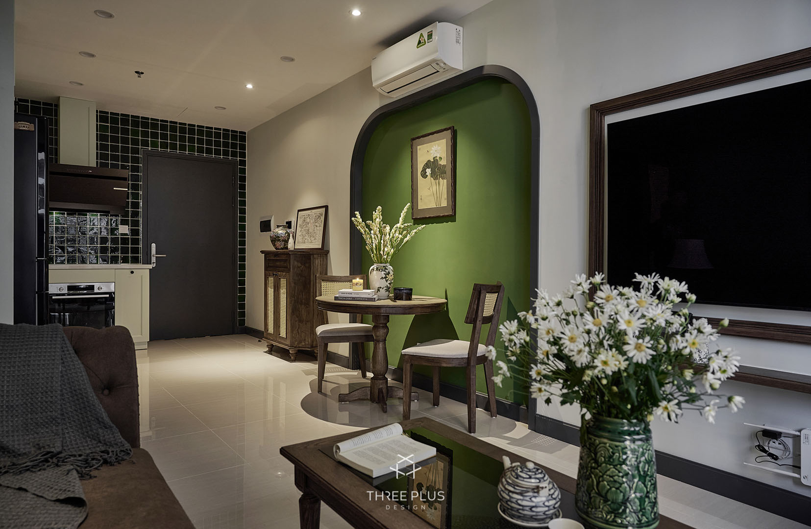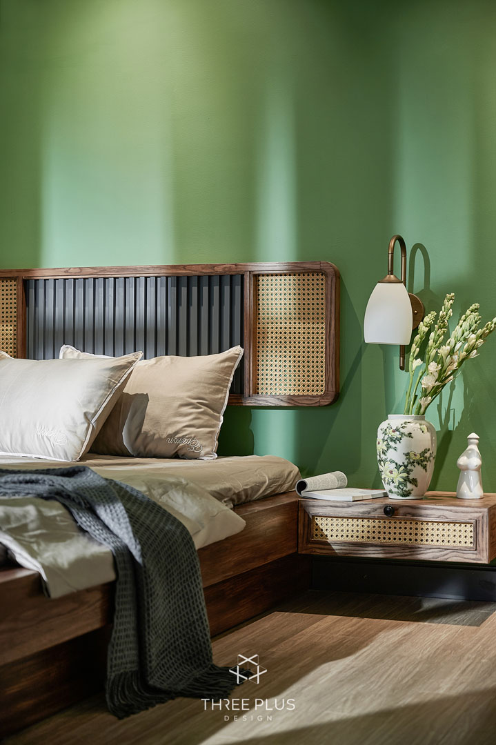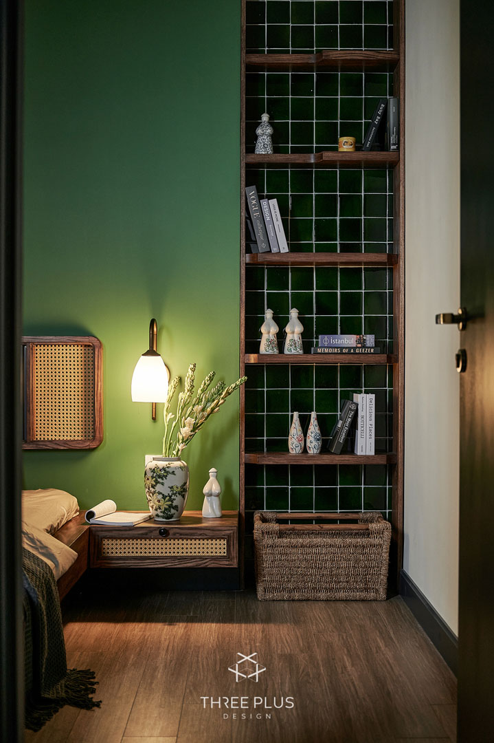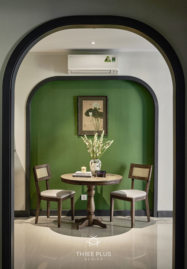 Là một người độc thân thuộc thế hệ cuối 8x, gia chủ X mong muốn sở hữu căn hộ theo phong cách Indochine có gam màu xanh lá hợp mệnh làm màu chủ đạo. Three Plus Design đã thực hiện thành công dự án Vinhomes Ocean mang phong cách Đông Dương độc đáo, cuốn hút.