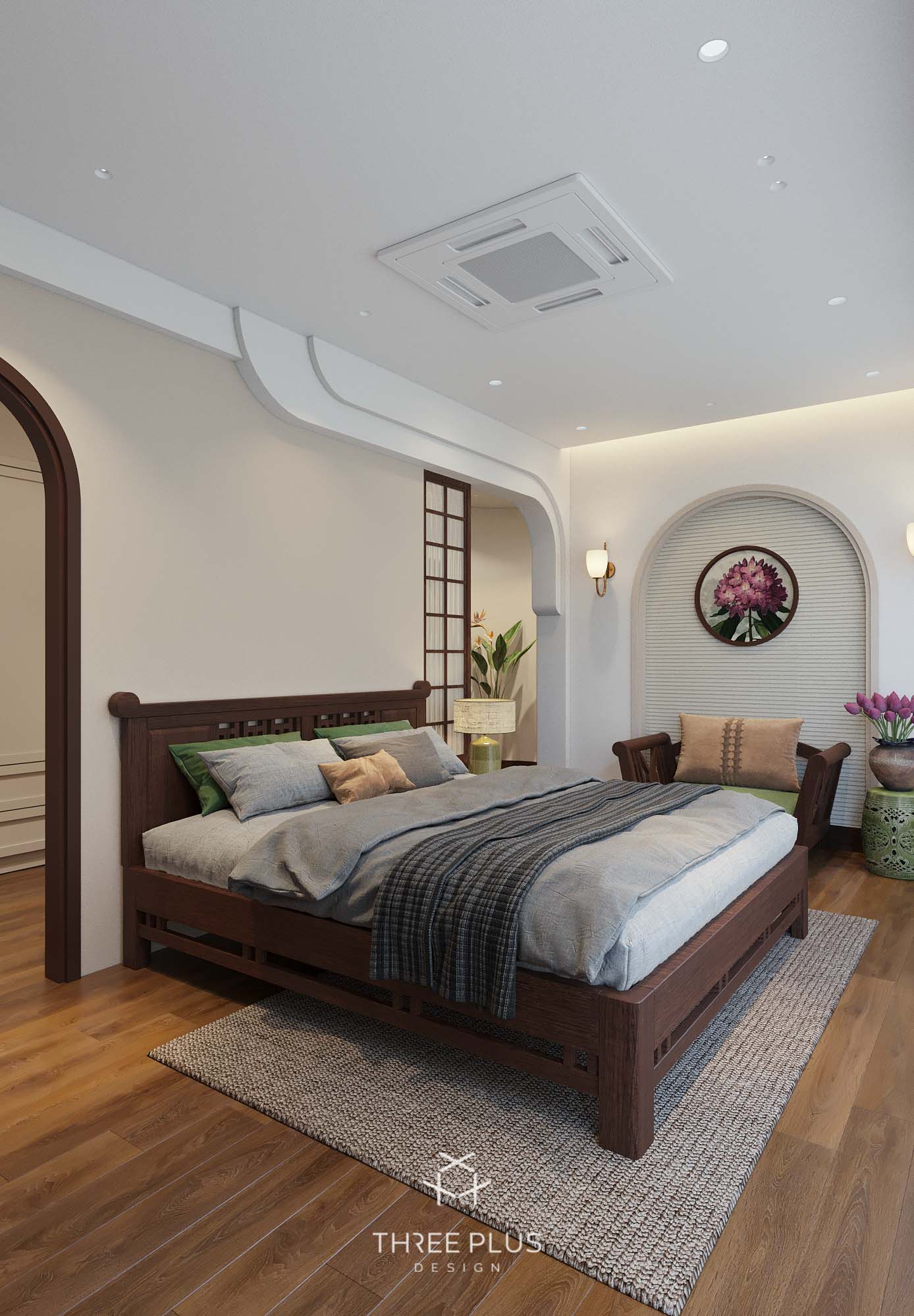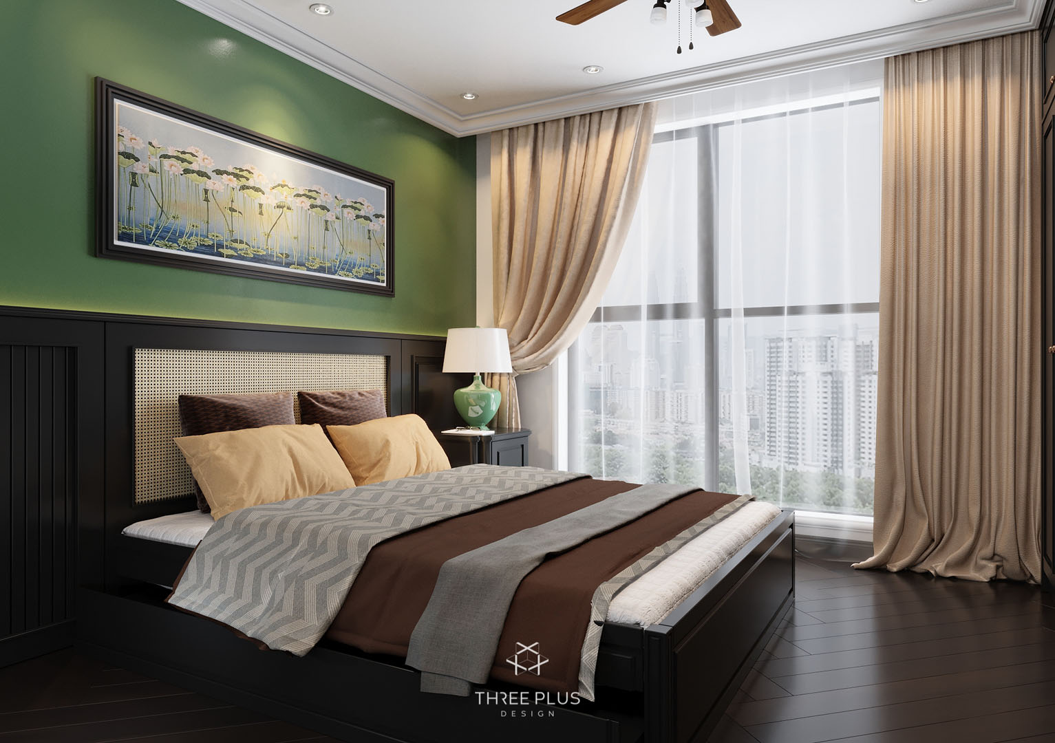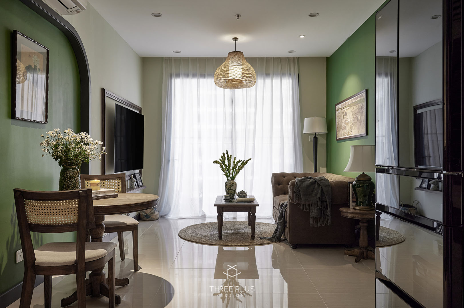 Là một người độc thân thuộc thế hệ cuối 8x, gia chủ X mong muốn sở hữu căn hộ theo phong cách Indochine có gam màu xanh lá hợp mệnh làm màu chủ đạo. Three Plus Design đã thực hiện thành công dự án Vinhomes Ocean mang phong cách Đông Dương độc đáo, cuốn hút.